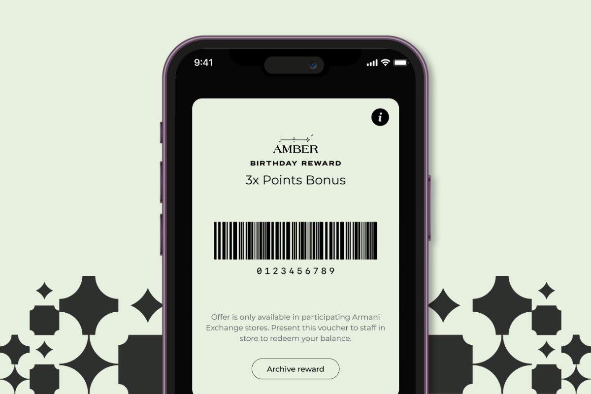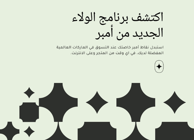 ستحصل على نقاط أمبر مُقابل كل عملية شراء. إضافة إلى المزيد من الامتيازات عند ارتقائك لمستوى أعلى ضمن برنامج أمبر.